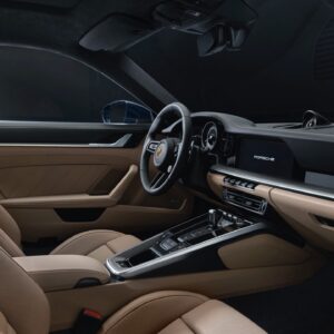 992型911ターボは、3.8ℓの水平対向6気筒ツインターボエンジンを搭載。このエンジンは新設計の吸冷気システムと2基のターボチャージャーを備えている。パワーは、580ps/750Nmを発揮。一足先にデビューした911ターボSよりも70ps/50Nm劣るものの、パワーの違いを見いだせないくらいの非日常的なハイパワーだ。